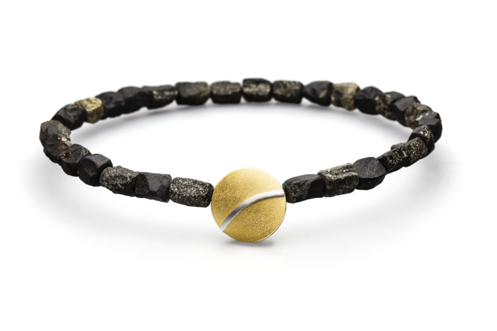 Ardoise et pyrite, 8-13mm, fermoir interchangeable en argent 925 et or jaune 22ct plaqué